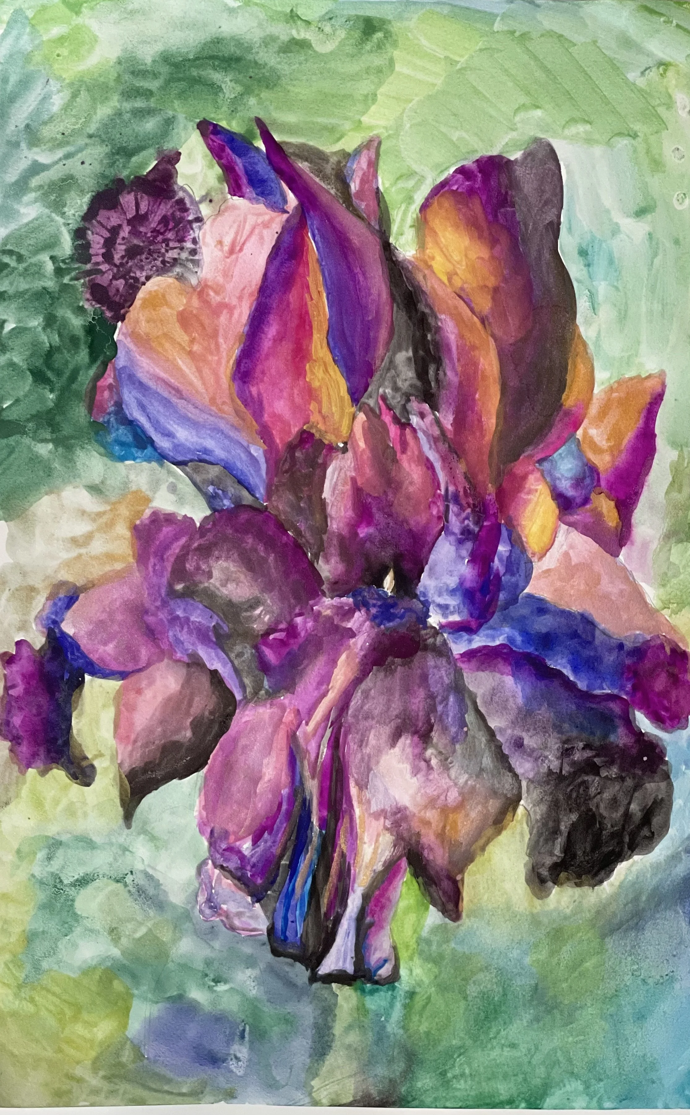"Black Iris Green," Watercolor on paper, August, 2022.